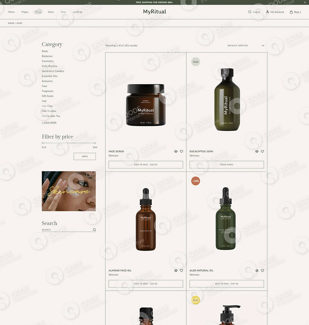 MyRitual comes with a collection of beautiful predesigned shop lists as well as an option-rich and flexible Product List element.